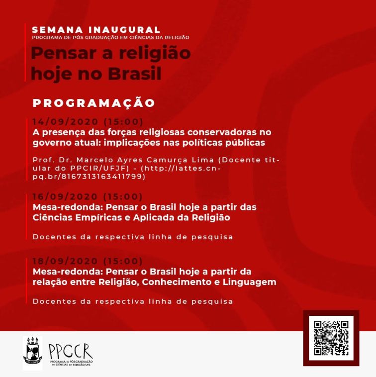 Sob este tema, de 14 a 18 de setembro de 2020, celebraremos a semana inaugural do semestre letivo 2020.2 do Programa de Pós-graduação em Ciências da Religião da Universidade Federal de Sergipe (PPGCR/UFS), com o objetivo de situar nossa atuação e produção acadêmica em Ciências da Religião em relação às questões prementes de nosso país, de ordem religiosa, ética, política e cultural, que evocam tanto a análise de nosso passado histórico quanto o futuro que desejamos para nossa sociedade.